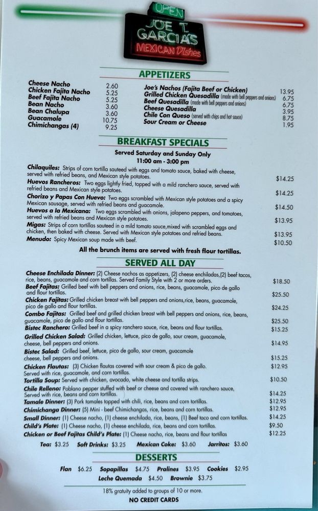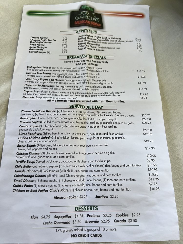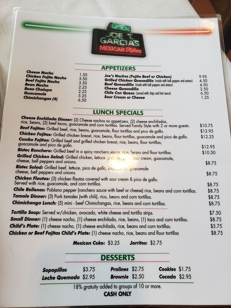 Introducing the menu at Joe T Garcia's, a vibrant Mexican restaurant nestled in Fort Worth's Stockyards, is an experience defined by authenticity and atmosphere. Renowned for its spacious layout and inviting patio, the restaurant buzzes with a lively crowd, making it perfect for groups and families alike.